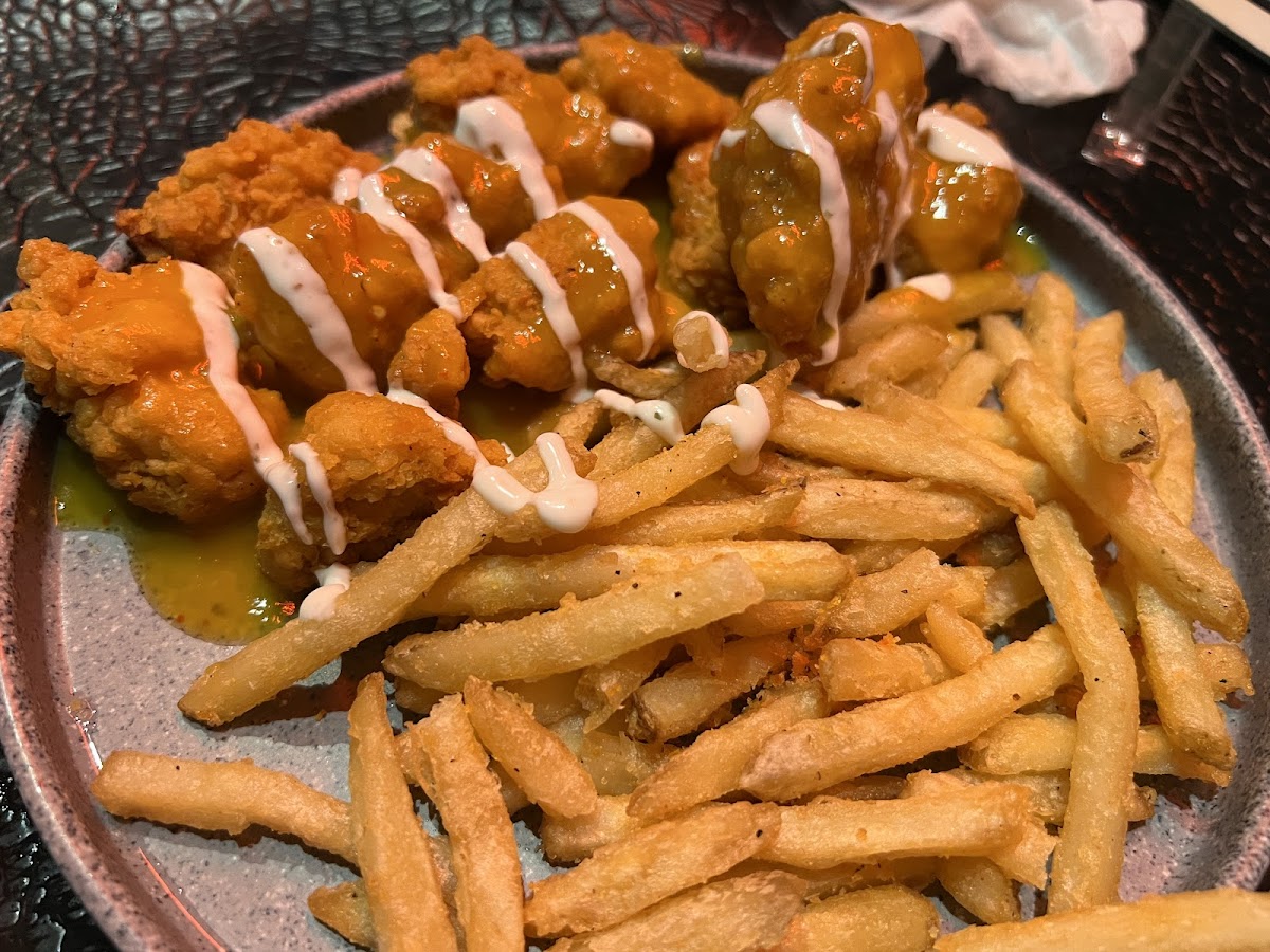 The menu mirrors this approachable spirit, with dishes and drinks that spark curiosity without overwhelming. From inventive takes on classic wings slathered in playful, bold sauces to fresh, bright beverages that blend unexpected flavors like mango with a hint of spice, every bite and sip plays a part in the story of the evening. The offerings adapt well to both casual cravings and moments worthy of a little indulgence.